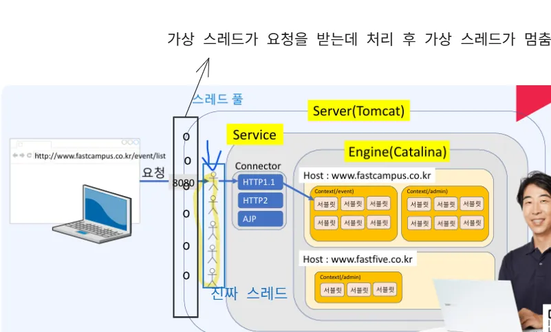 - . 자동으로 누군가 톰캣 내부에서 객체를 생성해주기 떄문.
