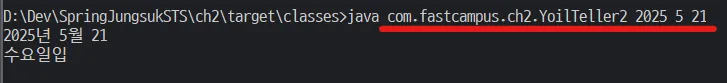- 우클릭 show in terminal 하면 java 인터프리터로 매개변수 주면서 실행가능