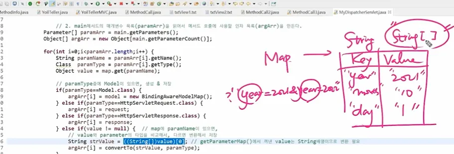 String viewName = (String)main.invoke(obj, new Object[] { 2021, 10, 1, model }); // reflection api 이용한 호출