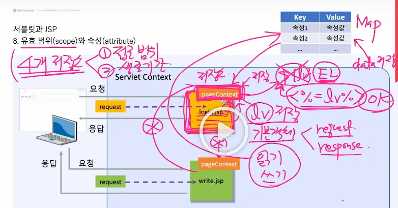 - 접근 범위 : 하나의 jsp 페이지 내에서만 lv에 접근(R, W) 가능