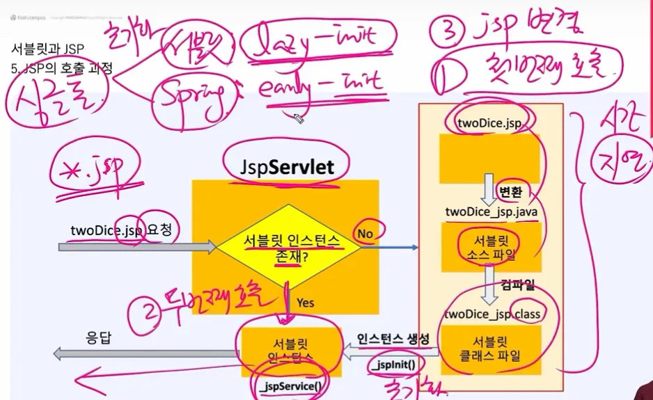 - JSP ≒ 서블릿